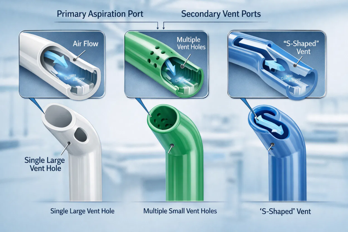 During procedures, fluid levels and access points can change quickly. Vent holes let clinicians adjust suction in real time without reaching for machine controls.