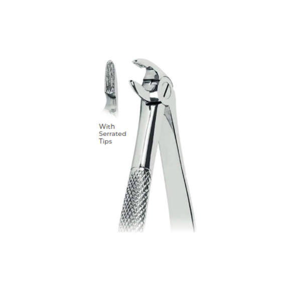 The Extracting Forceps with serrated tips for lower roots, provide precise control and efficiency for smooth root extractions in dental procedures.