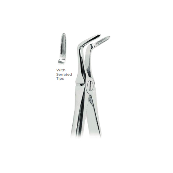The Extracting Forceps with serrated tips for upper roots, Fig.51A, is an essential tool for dental professionals specializing in root extractions.