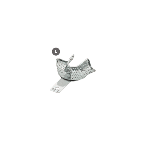 The Impression Tray with Retention Rim, L, L20 is essential for accurate impressions of larger jaws, ideal for dentures and dental prosthetics.