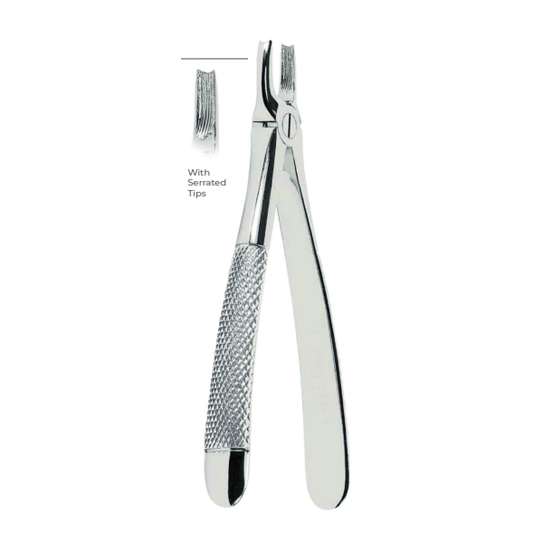In conclusion, the Trotter Extracting Forceps with serrated tips for upper canines is an indispensable tool for dental extractions.